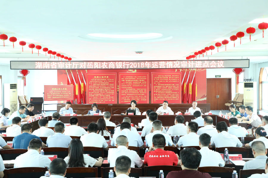 8月14日上午,湖南省审计厅对岳阳农商银行2018年运营情况审计进点会议在该行会议室召开。省审计厅审计组成员,省联社岳阳办事处班子成员、内控科负责人出席进点会,岳阳农商银行总行班子、各部室、各支行负责人参加进点会。