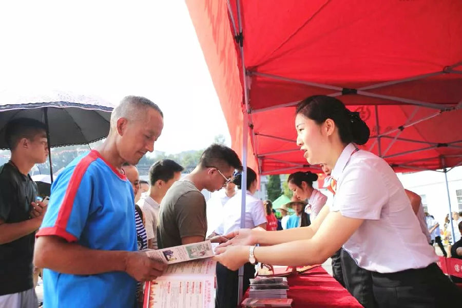 活动现场,桑植农商银行金融知识宣讲队搭建起咨询台,为当地村民和外来游客分发金融知识宣传折页,口头宣讲防电诈、反洗钱、识别真假人民币等金融知识,并组建成宣传小分队,依次走进节目演出现场以及人潮涌动的街道,向前来赶集的万名农户推介金融知识和信贷产品,接地气的文艺节目和农商银行火红的宣传展台相互辉映,引来众多农民群众纷纷驻足在咨询台前,仔细倾听着宣讲队员为大家答疑解惑。