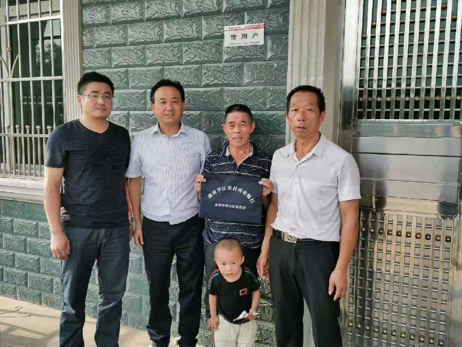 8月27日,平江农商银行党委书记方玉书在安定镇五狮村调研“党建共创、金融普惠”工作开展情况,并为该村第一批获评信用户的农户悬挂“信用户”门牌。