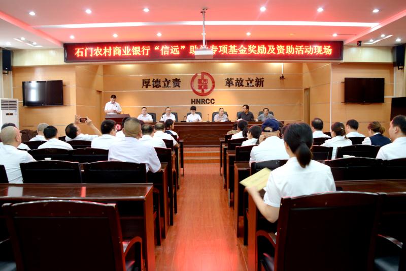 8月29日中午,石门农村商业银行“信远”助学专项基金奖励优秀大学生及资助贫困学生活动在总行三楼会议室举行。本次活动共捐赠资金3.7万元,其中来自石门一中和湘北职专学校的3名贫困学生每人获得一万元资助;3名高考被名优大学录取的农商银行职工子女获奖励3000元、2000元不等。