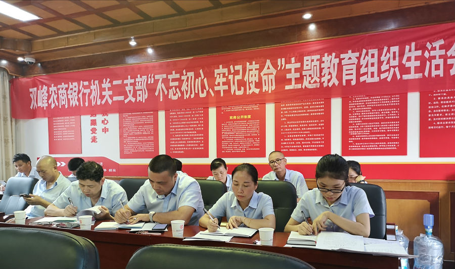 9月9日下午3点,双峰农商银行机关二支部“不忘初心、牢记使命”主题教育组织生活会在总行三楼会议室召开,党委书记、董事长周连华出席并作点评讲话,党委委员、副行长张新源、朱永红参加会议。