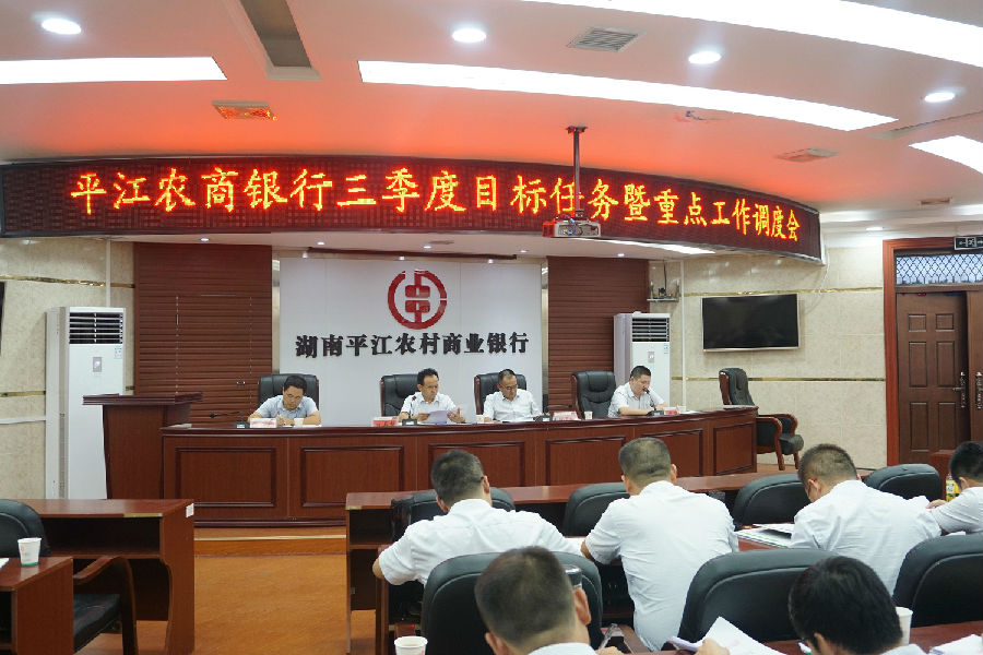 9月11日下午,平江农商银行党委书记、董事长方玉书主持召开三季度目标任务暨重点工作调度会,党委班子成员、机关部室经理、各支行行长参加会议。