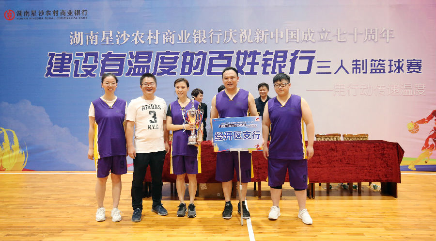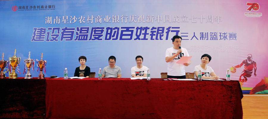 为庆祝新中国成立70周年,切实提高员工的团队意识、凝聚拼搏意识、激发活力合力,9月21日,星沙农商银行“建设有温度的百姓银行”“三人制”篮球赛顺利开赛。本次活动由星沙农商银行工会主办,共36支队伍参赛,客户、员工、员工家属等500多人前往现场为各代表队加油助威。