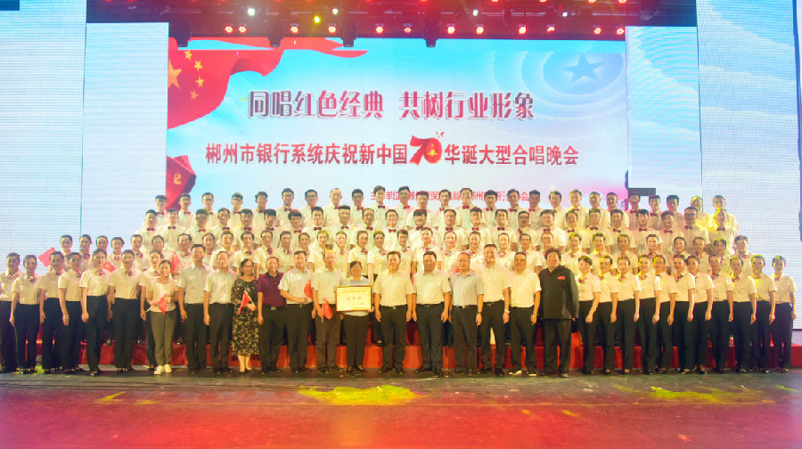 近日,郴州市银行系统“同唱红色经典 共树行业形象”庆祝新中国70华诞大型合唱晚会在新田汉剧院成功举行。郴州农商银行系统百人大合唱在全市银行系统15个节目中脱颖而出,荣获特等奖。