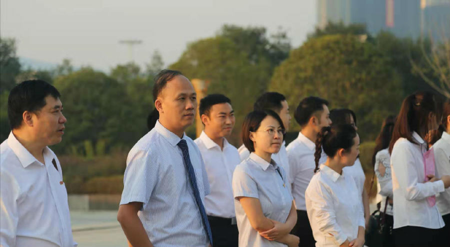 上午7点30分,洪江农商银行党委书记谢宏斌参加升旗仪式。全市各单位人员按照指定区域集合准备完毕。三名掌旗员、护旗兵迈着整齐的步伐在《歌唱祖国》的歌声中出旗就位。“向国旗,敬礼!”雄壮的《义勇军进行曲》奏响,鲜艳的五星红旗冉冉升起、迎风飘扬。