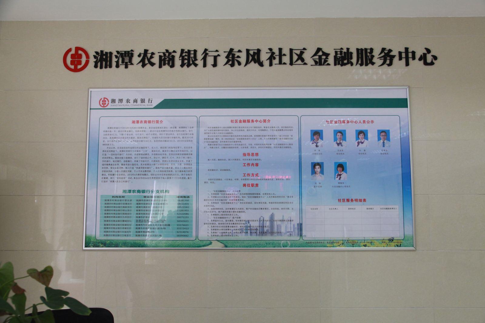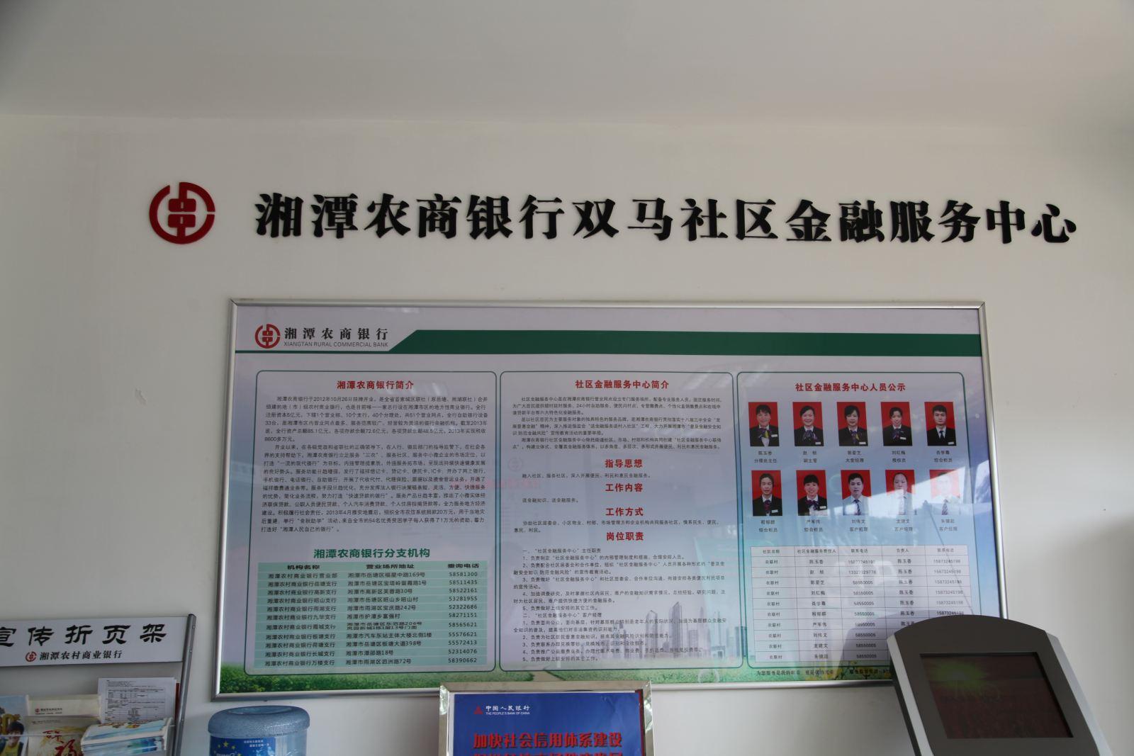 社区金融服务联络点是依靠湘潭农商银行网点设立的,旨在充分发挥社区力量,协调社区民众关系,为社区居民送金融服务、送金融产品的新型金融便民超市,可随时随地为社区居民提供全方位的优质金融服务。