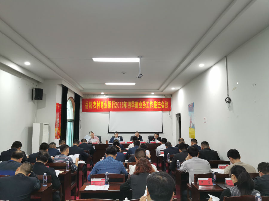 为进一步鼓舞士气、决战四季度,全面完成年度目标任务,10月15日下午,岳阳农商银行召开了四季度业务工作推进会,总行领导班子,部室经理、支行行长共50余人参加了会议。