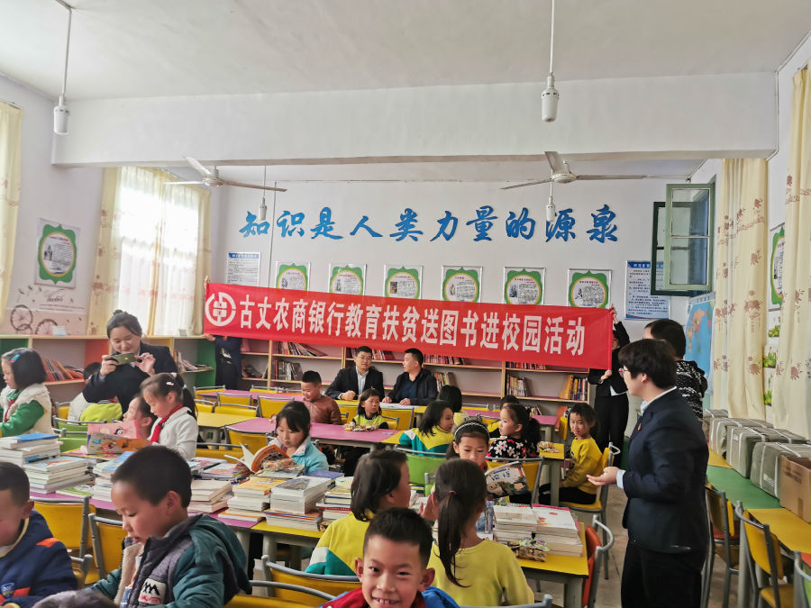 为更好地支持乡镇基础教育事业的发展,帮助贫困地区学生成长、成才,真正让“党建共创 金融普惠”落地开花,11月15日,在古丈农商银行党委的大力支持和帮助下,该行党委委员、副行长石刚,总行办公室主任张远东,人力资源部总经理唐敏,信息科技部总经理向宁,坪坝支行行长龙小明、古丈农商银行团委书记李敏、副书记张婷一行,来到古丈县河蓬乡九年制义务学校开展“党建共创 携手同行 情满校园”为主题的送图书进校园的爱心活动。