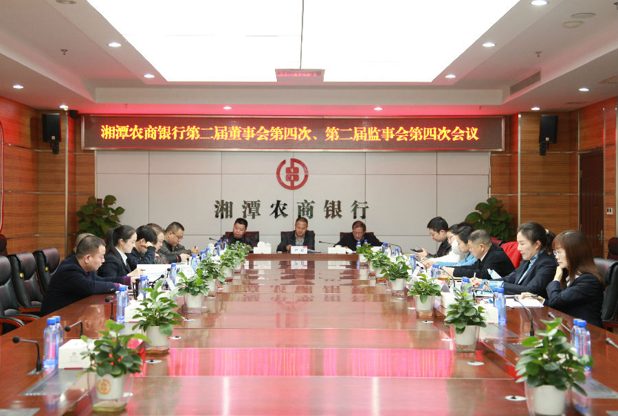 11月18日下午,湘潭农商银行第二届董事会第四次、第二届监事会第四次会议在总行二楼会议室召开。全体董事、监事参加了会议,党委班子成员、相关部门总经理列席了会议。会议由党委书记、董事长严桦主持。