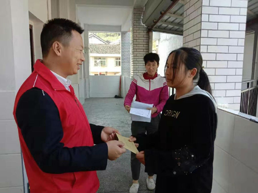据了解,这个女孩是小横垅乡罗丰村的一名留守儿童。父亲在三年前去世了,妈妈也外出打工,家里有四个孩子,她是老大,平时放假课余时间就会帮奶奶干农活和照顾弟弟妹妹,虽然家境贫寒,但丝毫不影响她的学习成绩,每次考试都是名列前茅。在农村,这样的留守儿童还有很多很多,平时袁行长和其他爱心人士经常会组织献爱心活动,不仅在物质上关心他们,精神上也常与他们沟通,倾听他们内心的声音,询问他们生活上有哪些困难。作为党员也作为一名农商银行的员工袁伟同志认为,关爱留守儿童,经常在关爱的方向加大力度,却忽略了真心的关爱是平等的,只有先了解这些孩子,知道他们的想法,然后才能给予他们真正需要的关怀和鼓励。他经常和孩子们说:“如果生活上遇到了问题和困难,可以随时来农商银行求助,农商银行的员工都会对你们伸出双手。”这些受到帮助的孩子们表示他们会好好学习,发奋图强,用知识充实自己,努力做一个对社会有用的人。