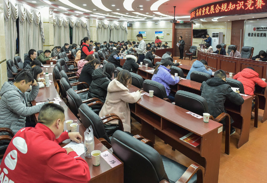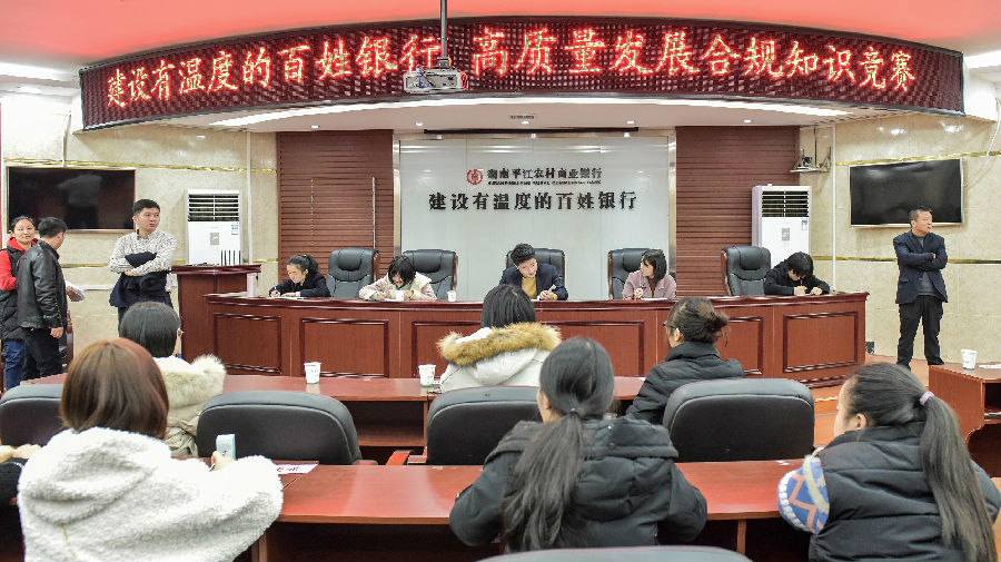12月2日晚,“建设有温度的百姓银行,高质量发展合规知识竞赛”在平江农商银行五楼会议室举行,机关及辖内各网点共计80余人参加此次竞赛活动。党委委员、副行长张卓亲临竞赛活动现场巡考并为获奖选手颁奖。