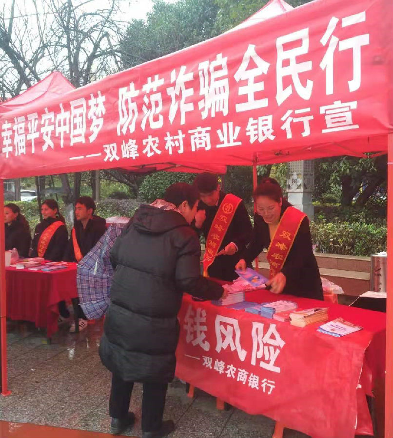 12月28日,省公安厅、娄底市公安局、人民银行娄底市中心支行、双峰县人民政府在蔡和森广场联合举办“防范电信网络诈骗、提高识骗防骗能力”宣传活动,双峰农商银行积极组织人员参加宣传。