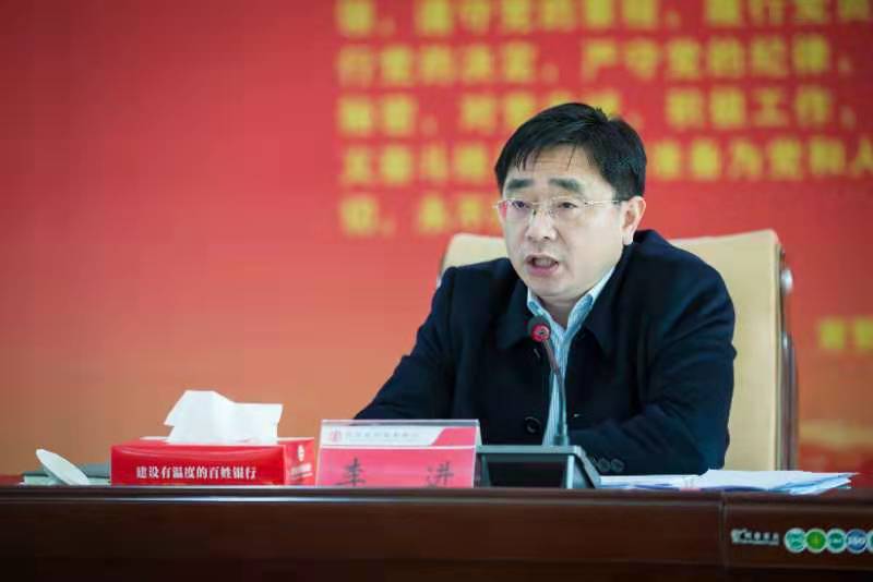 大会在雄壮的国歌声中拉开帷幕,董事长李进做了大会报告:首先对2019年度工作进行回顾和总结,他说,2019年全行上下,团结一心,奋力拼搏,奋勇争先、咬定目标不放松、各项工作取得了可喜的成绩,组织资金、支农支小、缴纳税金、风险防控、党建共创等主要工作硕果累累,受到上级部门的肯定。对于2020年工作展望,李进强调一是围绕“党建共创、金融普惠”的总抓手,切实打牢客户基础;二是围绕支农支小的总定位,持续优化信贷资产质量;三是围绕防范化解金融风险的总要求,着力抓好内控案防工作;四是围绕转型提质的总导向,不断提升业务发展活力;五是围绕人才兴行的大理念,持续提升员工队伍素质;六是围绕坚持和加强党的领导,充分发挥党建引领作用。