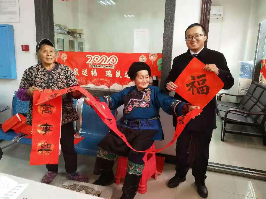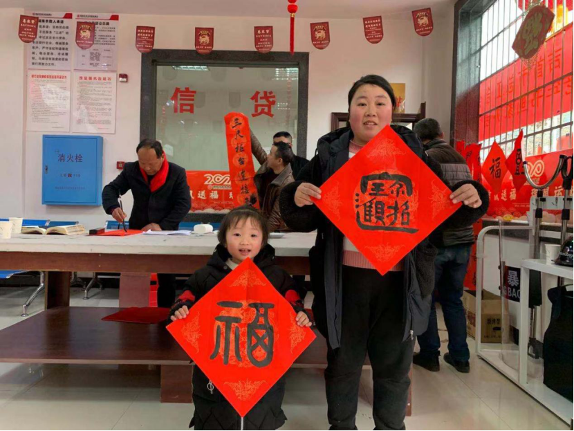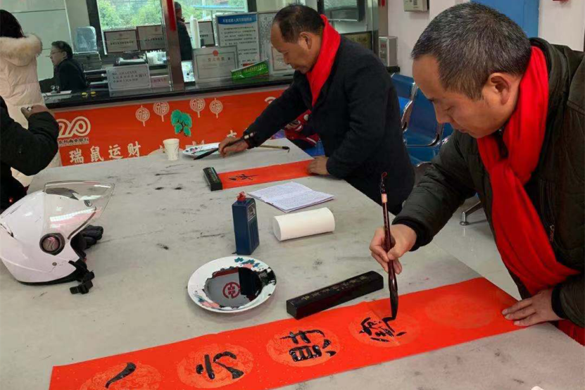 1月13—14日,吉首农商行寨阳支行开展了两场“迎新春,送春联”开门红活动,活动邀请了吉首市书法协会有名的书法家杨再喜和时远华,为来办理业务的客户务以及过往的群众义务写“福”字和春联,送去节日的真情祝福,增添喜庆祥和的氛围。