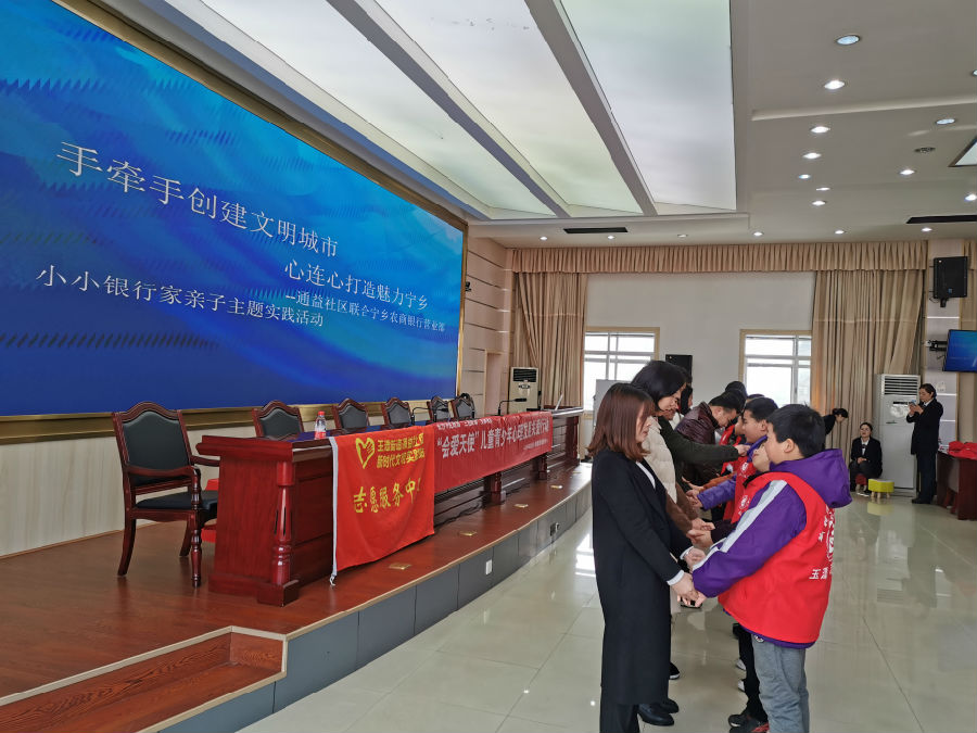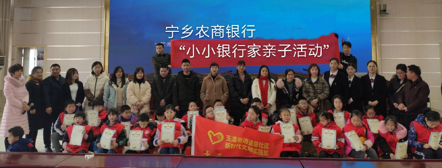 1月17日,宁乡农商银行营业部与玉潭街道通益社区在我行营业部联合举办了“小小银行家亲子主题活动”社会实践活动。