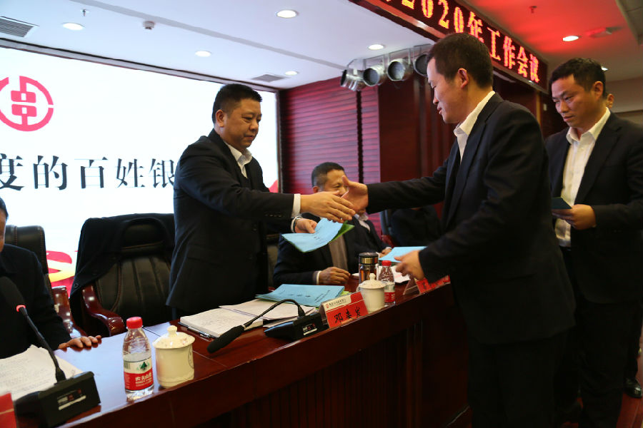 此次会议全行共有13个支行及营业部、33位个人超额完成“开门红”任务向大会进行了报喜,会议对全行2020年度先进单位和先进个人进行了表彰,各支行和部门负责人递交了《经营目标管理责任状》《案件防控和社会管理综合治理工作责任状》和《党风廉政建设责任状》,两位来自不同岗位的先进代表在会上分别做了经验交流发言。