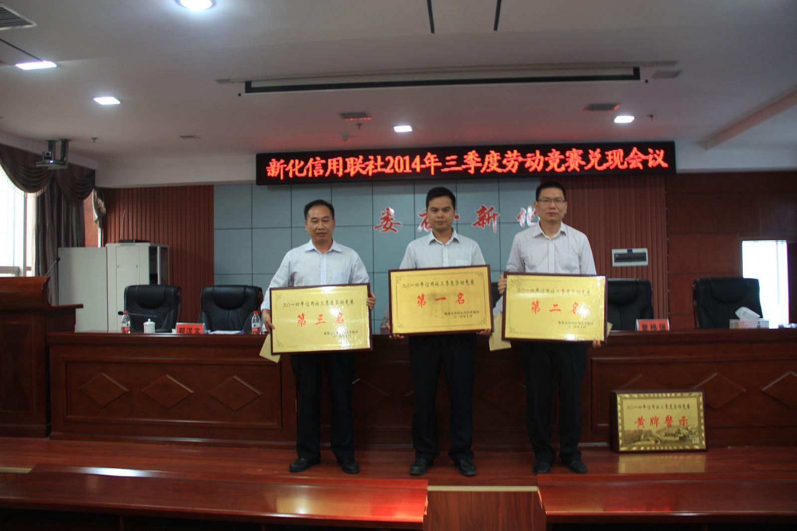 10月21日,新化县联社召开三季度劳动竞赛表彰大会,对8家综合得分100分以上的信用社进行了通报表彰,为排名前三位的信用社分别颁发了一枚金灿灿的奖牌。