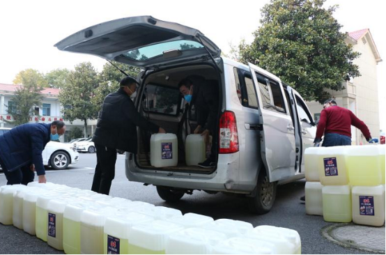 面对疫情突袭,政府和社区一刻不停的宣传和组织人民积极抗战,沩东支行了解到,由于防疫需要,各类防疫物资消耗很大、十分紧缺,特别是街道对居民生活区、公共区域进行全面消毒,消毒液用量很大,陈强行长通过多渠道的打听和寻找,集齐了三吨“八四消毒液”,到货的第一时间就安排车辆送历经铺街道各社区、沙河市场等单位,在这紧张的时刻不忘传递全体员工一起与政府抗战疫情的信念和决心,为这场抗战尽自己的绵薄之力。