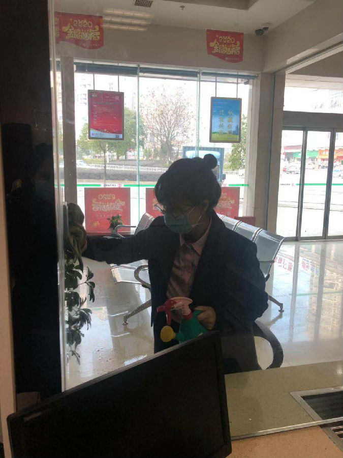 下午4点,我正在对ATM机消毒,一名男子戴着口罩,穿着自制的防护服(好像是件透明雨衣)走进来:“请问你们上班吗?”
