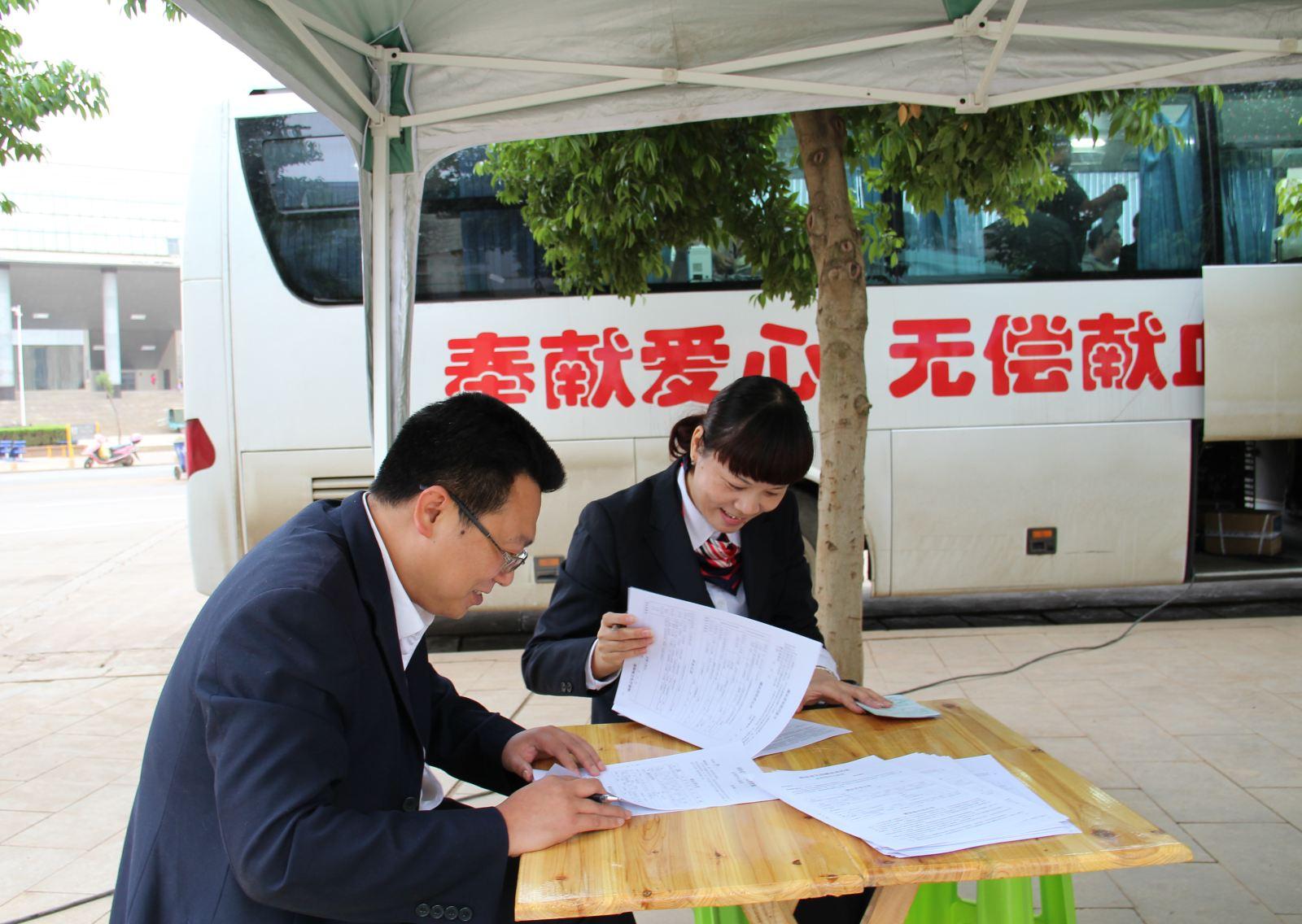 近日,在新田县文体中心广场前,新田联社20多名员工踊跃参与“无偿献血 奉献爱心” 活动。这是该联社今年第二次组织员工参加无偿献血活动。