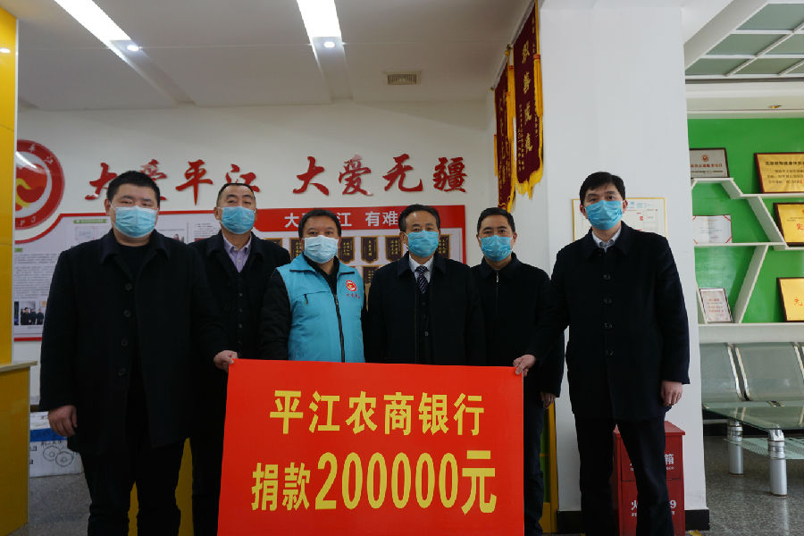 2月18日下午,平江农商银行党委班子一行来到平江县大爱平江慈善基金会,在定向向全县乡镇捐款30余万元的基础上,再次捐赠金额20万元用于平江县一线疫情防控工作。