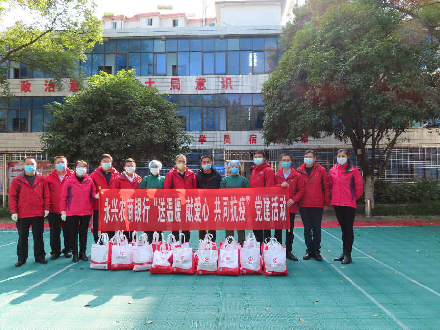 疫情无情,人间有爱。2月18日,永兴农商银行围绕“建设有温度的百姓银行”愿景,组织开展“送温暖、献爱心、共同抗疫”党建活动,为隔离人员送来375份生活物资,用行动彰显社会责任。
