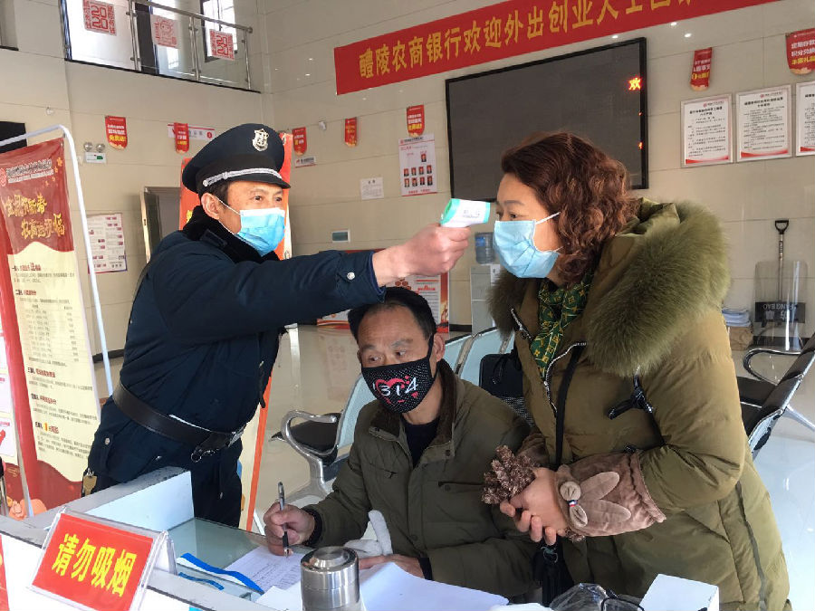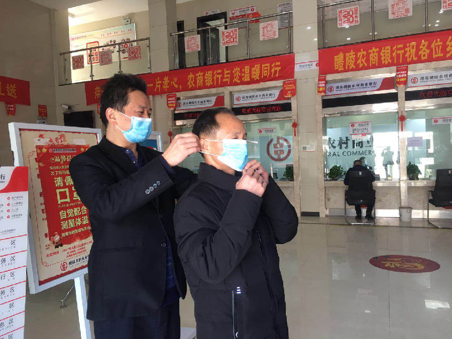 醴陵农商银行新阳支行积极贯彻落实总行要求的一系列防控措施,坚决做到“五个到位”,即宣传提醒到位、佩戴口罩到位、消毒杀菌到位、测量体温到位、人员登记到位,确保不出现任何疫情防控风险。“兵马未动,粮草先行”,总行第一时间为各网点配发了充足的各类防疫物资,让员工能够安心的在自己的工作岗位坚守。在此基础上,新阳支行主动自行采购酒精、艾条、中药预防剂等防疫物资配发给员工家属及50万元以上的优质存款客户,让员工家属和客户在寒冬中感受到来自农商银行的温暖。