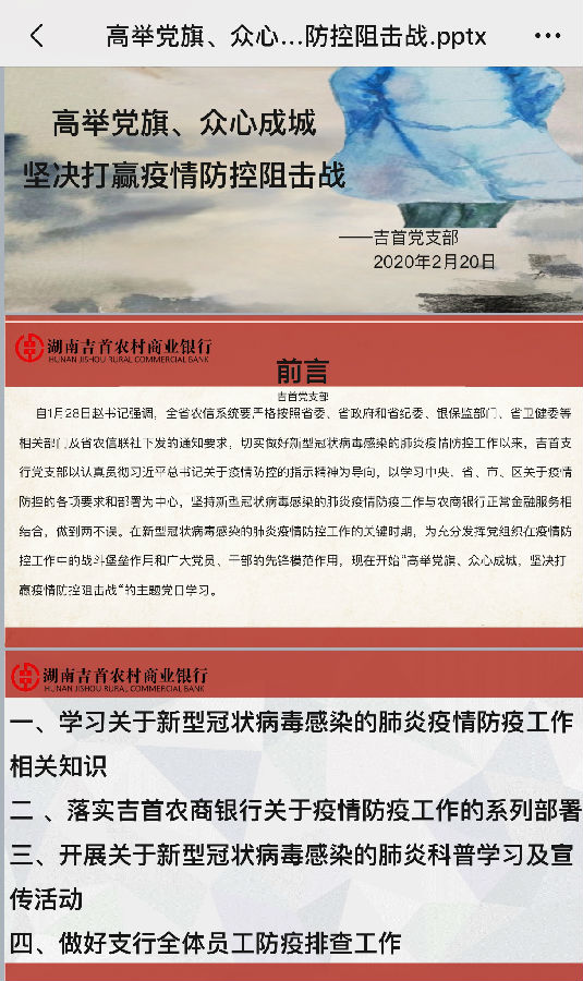吉首党支部制作的疫情防控专题学习PPT