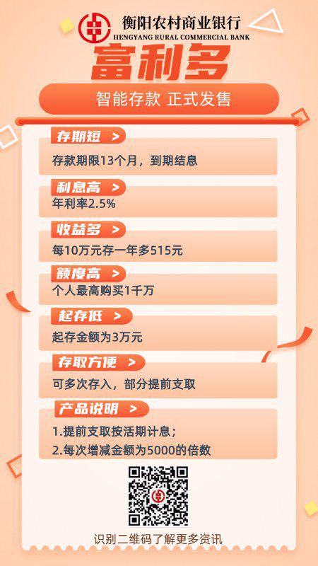 近日,衡阳农商银行推出“富利多”智能存款产品,在全市正式发售。