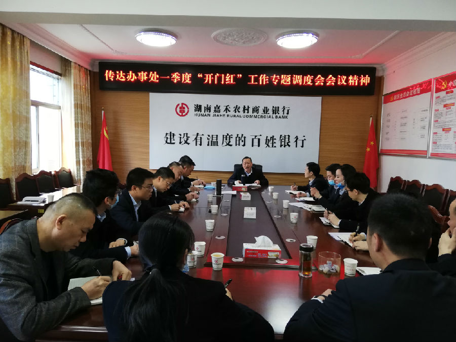 3月11日上午,嘉禾农商银行在总行三楼小会议召开行务会,传达市办事处一季度“开门红”工作专题调度会会议精神。会议由总行党委书记、董事长向卫平主持。