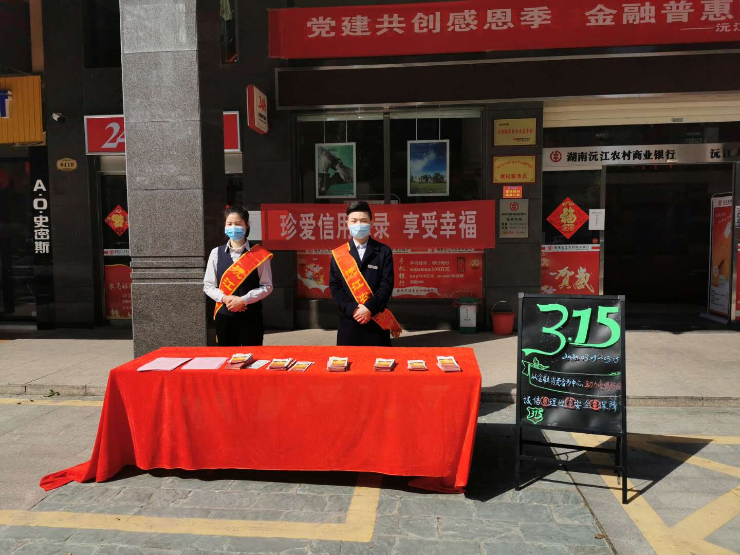 近日,沅江农商银行积极响应省联社及监管部门关于开展“3·15”金融消费者权益保护的号召,组织辖内各网点在做好防护消毒的同时,适当地利用网点+线上形式开展多样宣传,力求有效提升消费者权益保护意识,提高社会公众防范诈骗、非法集资、征信保护能力。