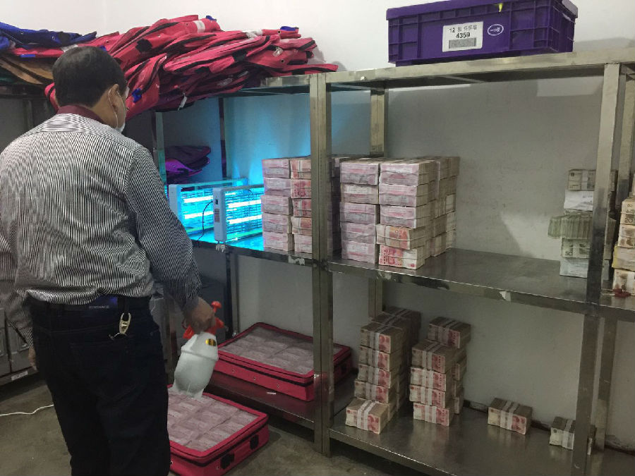 二是消毒到位。总行要求各营业网点对收存现金必须经过消毒处理后才能对外支付,杜绝现金“坐收坐支”现象,严格落实回笼消毒封存等措施。在当前疫情期间,总库现金清分人员取消休假,对各支行网点上缴的现金要及时清分清理,明确规定回笼后的现金必须经过消毒后放置7天才可以对外使用。