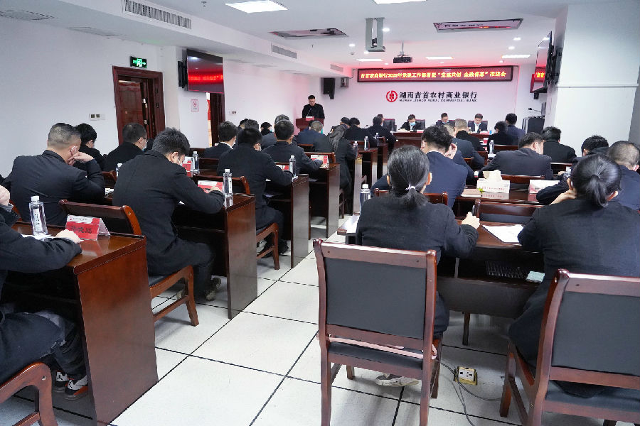 为推动党建引领业务高质量发展,传达贯彻全省农信系统党建工作会议精神,总结回顾前期党建工作,安排部署今年党建工作,3月20日,吉首农商银行在十楼会议室召开2020年党建工作部署暨“党建共创 金融普惠”推进会。总行党委班子成员,各党支部书记、委员,机关各部门负责人,各支行行长共46人参加了会议。