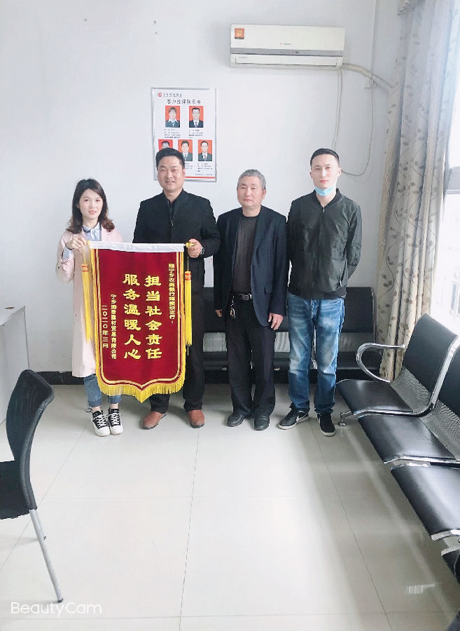 宁乡渤泰建材贸易有限公司给煤炭坝支行送锦旗