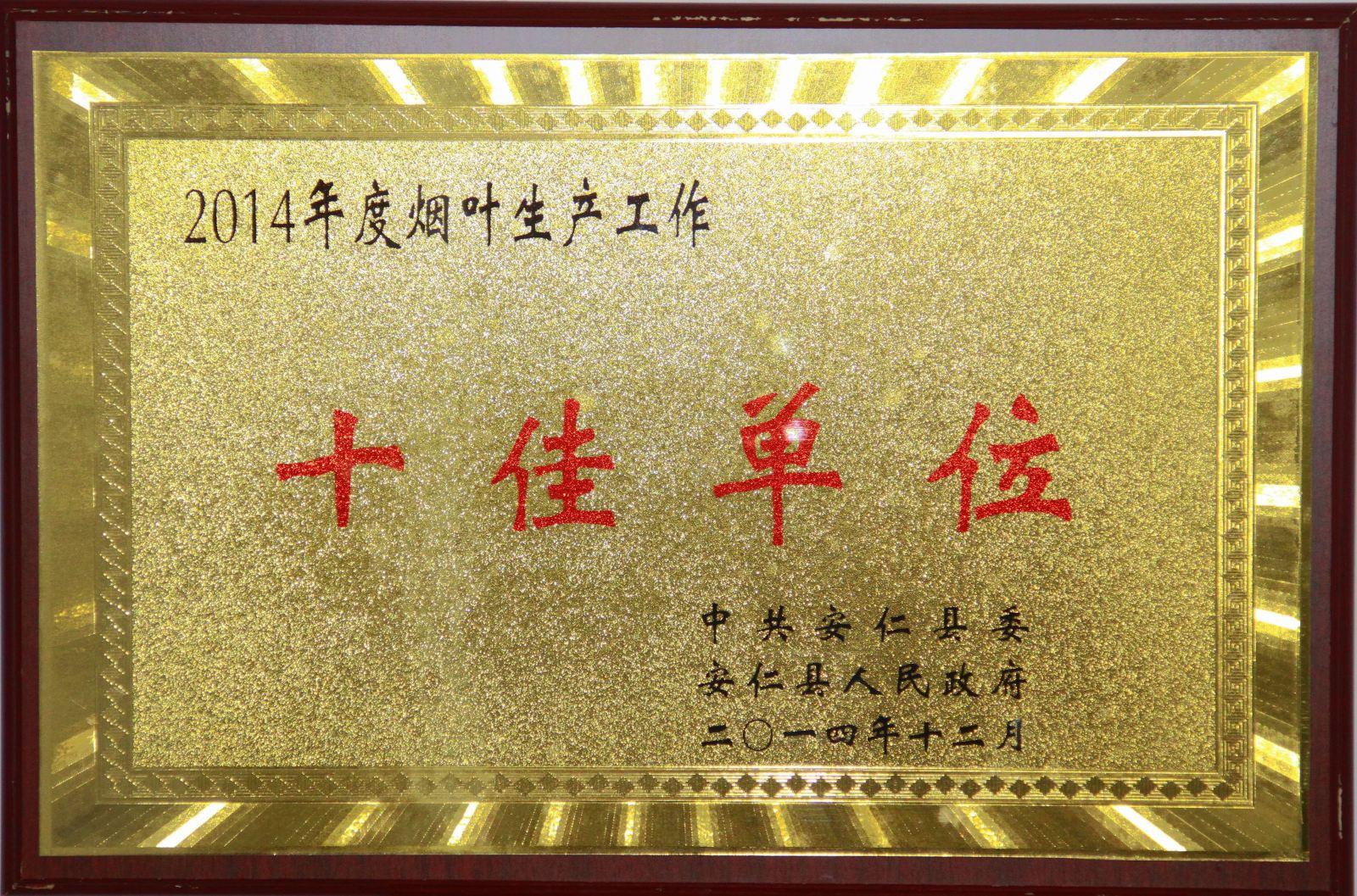 在近日召开的安仁县烟叶生产工作大会上,安仁县信用联社再次被县委、县政府评为“2014年度烟叶生产工作十佳单位”,这是该联社连续两年获此荣誉。