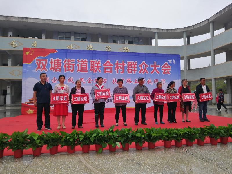 5月21日,双塘街道联合村在村委会和吉首市华泰公司驻村工作组主办下,举行了以“国企牵线、民企助力、扶贫路上你我同行”为主题的群众大会。双塘街道党政负责人、吉首华泰公司负责人、双塘街道各村支两委干部、各驻村工作组及联合村村民共四百余人参加此次群众大会。吉首农商银行双塘支行借助平台,在活动现场摆展台、拉横幅、赠礼品等,开展多形式业务及形象宣传。
