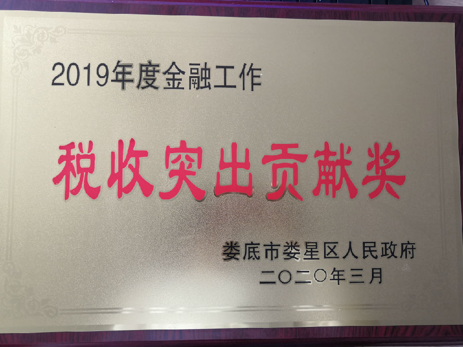 2020年5月22日,娄星区人民政府举办了举办了2020全区金融工作暨银企签约会,娄底农商银行在积极履行纳税人义务、勇担社会责任等方面表现突出,荣获“2019年度金融工作税收突出贡献奖”荣誉。