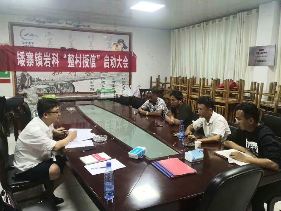 为进一步改善和提升金融服务实体经济以及农村金融服务水平,实现基层支行党支部与社区、村委党支部共担共育共赢的良好氛围,更好的开展整村逐户评级授信工作,5月26日晚,吉首农商银行党群工作部总经理吕亮和矮寨支行行长钱海来到矮寨镇岩科村,与岩科村扶贫第一书记张一苇以及各位村干部举行了整村授信启动仪式。
