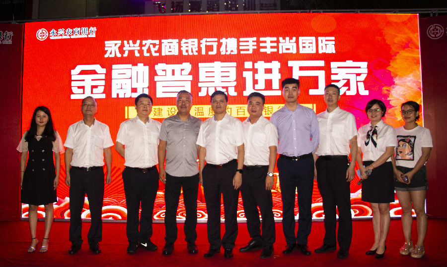 活动当晚,伴随着丝丝细雨送来了夏日的清凉。丰尚国际与永兴农商银行签署了战略合作协议,李爱平与刘永辉共同为永兴农商银行驻丰尚国际金融普惠工作站揭牌。活动中还安排了舞蹈、演讲、宣传微电影展播等文艺类节目,设置了抽奖环节,举办了客户抢答提问环节。活动现场,观众热情高涨,积极参与,气氛活跃,活动持续近3个小时。