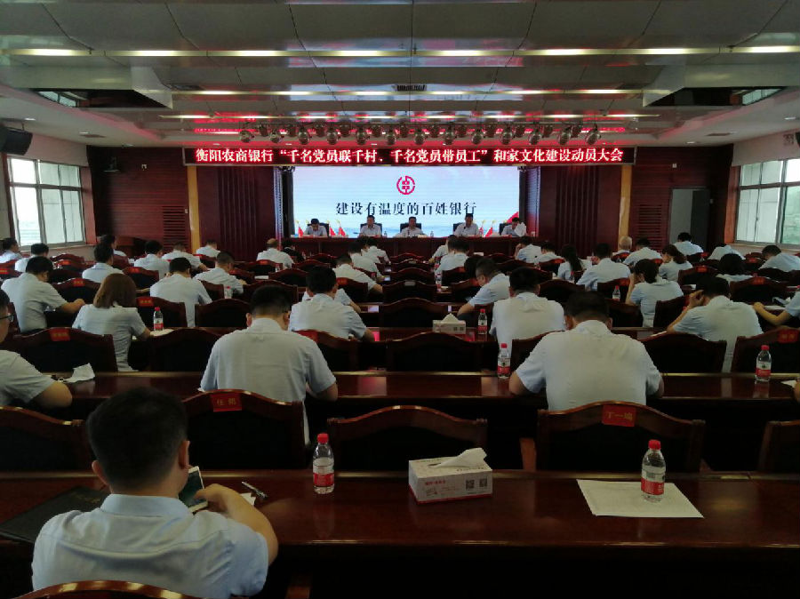 近日,衡阳农商银行采取会议召开“千名党员联千村、千名党员带员工”党员示范工程和家文化建设动员大会。党委班子成员、副行级干部及各支行、部门负责人等100余人参加了本次会议。
