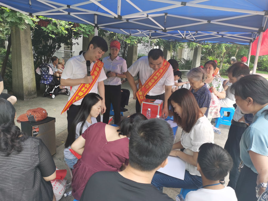 6月14日,骄阳似火,永兴农商银行营业部客户经理们在总经理周慧的带领下,进入金河铭庄小区开展“金融普惠进万家”活动,为小区居民送去该行的优质金融产品“福易贷”,其中,车位分期受到广大业主的欢迎,活动开始仅一个小时,现场签约了4人,授信金额24万,登记意向客户数26位。