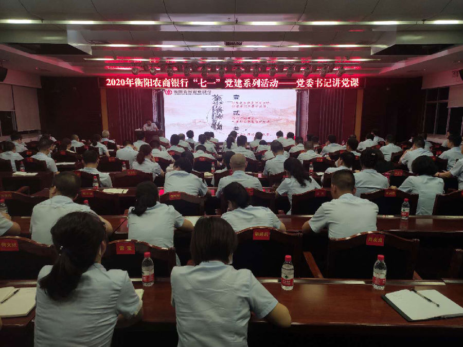 6月18日晚,衡阳农商银行举办“七一”党建系列活动——党委书记上党课。衡阳农商银行党委书记、董事长邓来发讲党课。各基层党支部书记、支行行长、总行机关全体党员、科学城支部全体党员合计145人参加了本次会议。