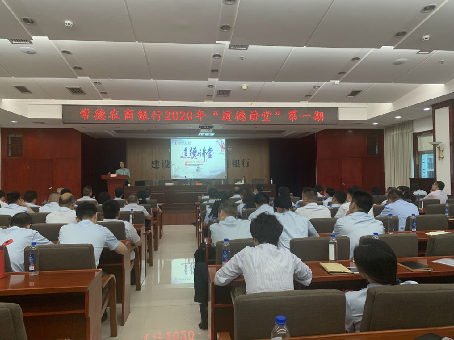 为营造健康向上的道德风尚,6月22日下午,常德农商银行在八楼会议室举办了2020 年第一期“道德讲堂”,特邀常德市政协常委、常德市礼仪文化研究会会长孙一容讲师授课,总行班子成员,工会主席,一级支行班子成员及部室经理、各部室总经理,各级支行行长、分管内务副行长共120人参加。