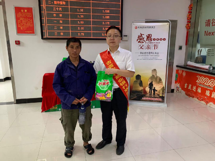 当天早上一开门,只见营业大厅的礼品展示台上已摆放整齐父亲节的专属礼品,凡是在当天来该行办理业务的“父亲们”均可获得精美礼品一份。一位白发苍苍的老大爷在接过这份惊喜之后,竖起大拇指连连称赞道:“我长到这岁数都未曾过过父亲节,你们吉首农商银行的服务实在是太贴心了,父亲节都会想着给我们赠送礼品,我真的非常感动!我存钱就认准你们吉首农商银行!”会计小陈笑着回答:“大爷,这是我们应该做的!”“哈哈哈......”一天下来,温暖的场景不断上演,整个营业厅都充满着其乐融融的节日氛围。当天共有60位父亲收到了该行赠送的礼品。