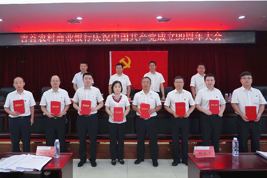 党委书记、董事长郑崇武作大会主题报告。郑崇武指出,本次大会既是一次庆祝党的99岁生日的纪念会,也是深入开展“党建共创 金融普惠”行动的阶段总结会,更是实施党建引领,助推高质量发展的推进会。一是缅怀党的功绩,全面推进高质量发展。我行各党支部要以新时代党的建设新的伟大工程在我行落地为根本,认真落实,充分发挥党组织领导核心、政治核心作用,全面推进党的政治建设、思想建设、组织建设、作风建设、纪律建设,把制度建设贯穿其中,把风险防控当作头等大事,守住农商银行的根与魂,不忘初心、牢记使命,融入中心、服务大局,切实把党组织两个核心作用转化为我行发展的新优势,为打造高质量发展提供坚强的政治保证。二是加强党的建设,全面推进从严治行。始终把坚持党的领导、加强党的建设贯穿一切工作之中,认真贯彻全面从严治党的政治责任,把握全面要求、落实从严标准,牢把工作主基调,把方向、管大局、保落实,推动了整体工作稳步提升。三是突出党建引领,全面推进融合发展。全面激发员工的责任、情怀与担当,摈弃陋习,转变作风,树立新形象。下阶段工作,全行上下要紧紧围绕“建设有温度的百姓银行”这一发展愿景,以“党建引领质量主导战略”为核心,以“党建共创 金融普惠 三结三促”为总抓手,确保党建与业务互促进、共发展,着力书写好“用温度传递温暖、用压力激发活力、用品质树立品牌”三篇文章,力争把我行建设成为有活力的贴心银行、有品质的放心银行、有担当的良心银行。