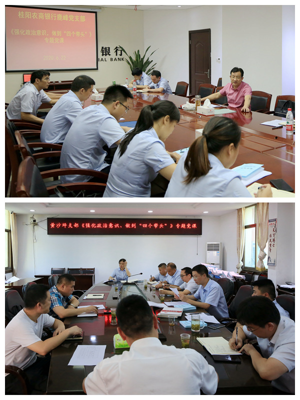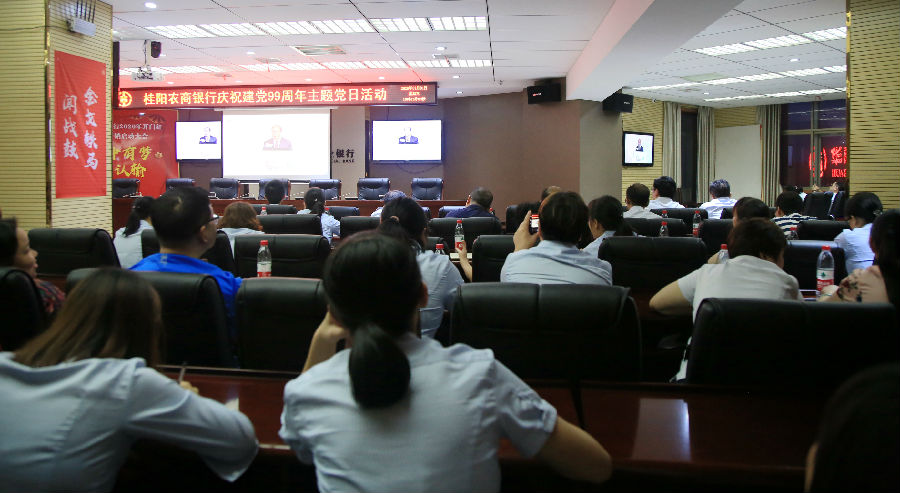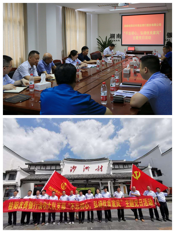 三是主题鲜明,支部活动形式多样。7月1日晚,桂阳农商银行党委开展“庆祝建党99周年”主题党日活动,组织全行党员和职工通过远程教育系统观看金一南教授讲座视频《从百年沧桑到大国崛起》,并通过考试系统组织党员进行党建知识考试;6月30日,龙潭支部联合正和镇阳山村委开展“党建共创 金融普惠”启动仪式,开展金融知识宣传;清收大队支部组织全体党员开展“不忘初心,弘扬优良家风”主题党日活动,到汝城沙洲村学习“半条被子”革命精神,重温入党誓词;6月20日,机关第五支部、敖泉支部、塘市支部三个支部联合邀请退休老员工讲家风故事,讲农信历史和农信精神;黄沙坪支部邀请总行领导上“强化政治机关意识,做到‘四个带头’”专题党课,等等。
