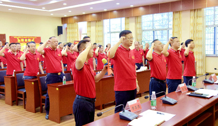 在雄浑庄严的国歌声中,全体党员起立,齐唱国歌。随后在党委委员胡国生的带领下,现场所有党员面向党旗,举起右拳重温入党誓词,誓言铿锵,承诺掷地,唤醒了每一位共产党员“最初的记忆”,坚定了在场共产党人“不忘初心、牢记使命”的信念和决心。
