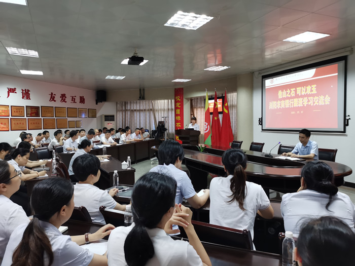 7月7日晚,南岳农商银行组织全体员工召开浏阳农商银行跟班学习交流会,会议由副行长李理主持。