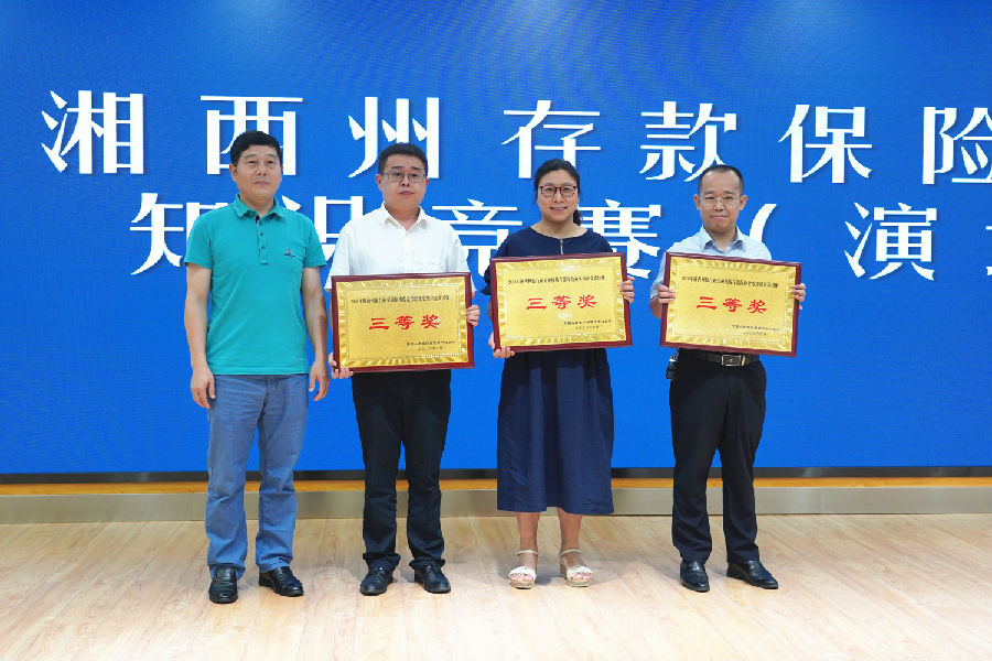 为提高存款保险公众认知度,充分发挥存款保险有效防范金融风险,7月10日,中国人民银行湘西中心支行举办全州存款保险业务知识竞赛活动,吉首农商银行选派的三名选手代表参加了此次竞赛。经过激烈的角逐,选手的奋斗,该行荣获业务知识视频竞赛三等奖,个人业务知识笔试竞赛二等奖,团体奖三等奖。