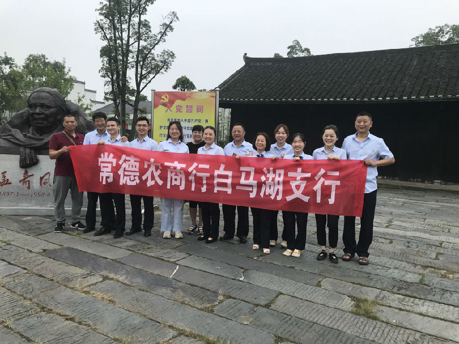 为进一步发挥党员职工先锋模范作用,不断增强队伍凝聚力和战斗力,7月16日,常德农商银行白马湖支行党支部全体党员来到红色教育基地帅孟奇故居,开展“重访革命前辈、重温革命历程”主题党日活动,学习缅怀革命先烈,重温党的光辉历史。